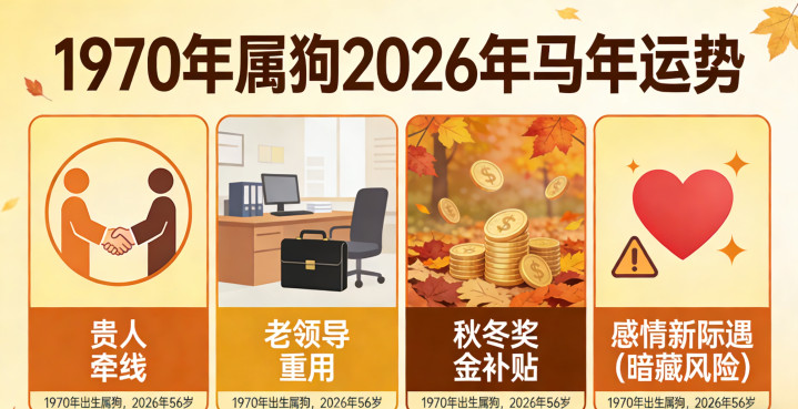 职场不用再当老黄狗了。背后有男性老领导替你说话,你干了一辈子“靠谱”二字,这时候比啥都值钱。智联招聘《2023中年职场忠诚度报告》说得好:在同一单位干满8年以上的人,56岁时被重用的概率高出47%。领导拉你一把,比培养个新人省心太多。2026年下半年,属狗的人里会冒出一批“退二线上三线”的聪明人——转岗做资源对接,避开中层内耗,钱不少拿,气少受一半。