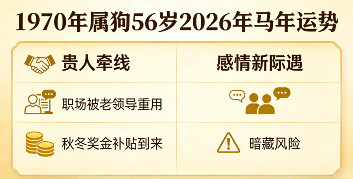 56岁,别人带孙子、泡枸杞,1970年属狗的人偏要在2026年马年玩把大的。午戌半合,天德贵人亲自上门递绳子——这条绳,不是拴住你的,是拉你上岸的。