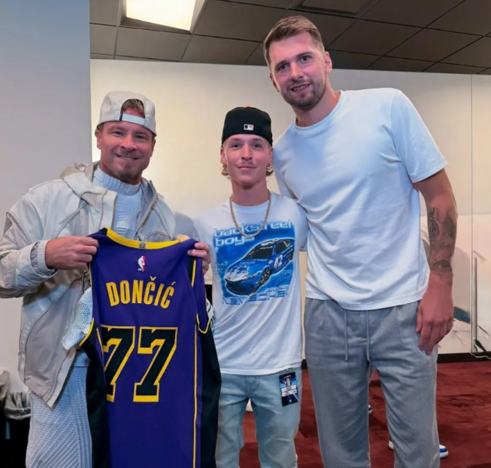 东契奇与后街男孩互动、合影留念,还赠送亲笔签名球衣以及亲签的球星卡;目前东契奇已经返回洛杉矶参加活动,继续宣传自己的新鞋。