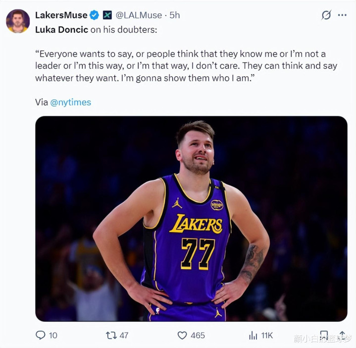 而东契奇本人对外界的风评是这样的态度:每个人都想说些什么,很多人觉得很了解我,甚至觉得我不是一个领袖,或者说我这样、说我那样,我不在乎。他们想怎么说、想怎么想都可以,我会让他们看到真实的我。
