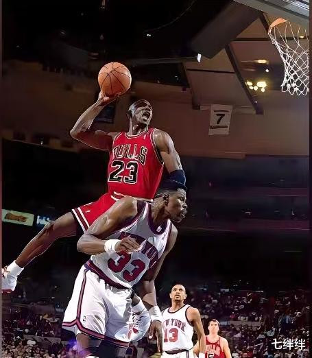 最经典的一幕发生在1991年季后赛首轮——乔丹正面隔扣尤因,那张照片成了篮球之神最经典的背景板之一。