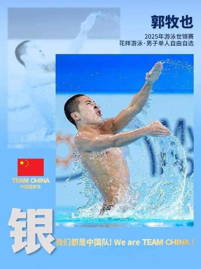 在刚刚结束的新加坡游泳世锦赛花样游泳男子单人自由自选决赛中,中国小将郭牧也表现惊艳,以220.1926分的成绩斩获银牌,成为首位登上该项目世锦赛领奖台的中国选手,创造了中国花样游泳的历史。