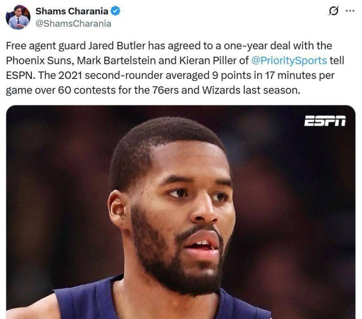 其中,前湖人队球员贾登·古德温正式加入太阳,他上赛季以38.2%的三分球命中率成为湖人队的“奇兵”,并在关键时刻展现出了出色的投篮能力。尽管湖人队在为了签下马尔科姆·斯马特而放弃了古德温,但他依然找到了新的机会,加入了太阳队。除了古德温,太阳队还与贾里德·巴特勒达成了一份为期一年的合同,进一步补充了球队的深度。