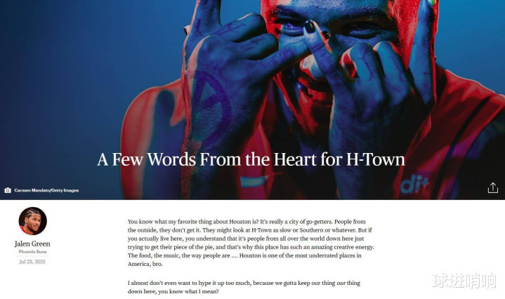 作为休斯顿火箭队长期培养的核心新星,杰伦·格林的转会消息无疑让球迷们感到震惊和惋惜。尽管这位年轻球员在休斯顿度过了他职业生涯的初期,但他最终还是通过一笔8换1的大交易,加入了菲尼克斯太阳队,迎来了职业生涯的新篇章。在正式加入太阳队之前,杰伦·格林通过《球星看台》发布了一封亲笔信,向火箭队告别,并表达了对这段经历的感激。