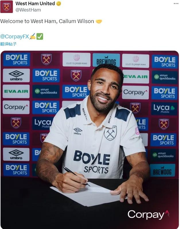 33岁的威尔逊和西汉姆签下了一份一年合同。