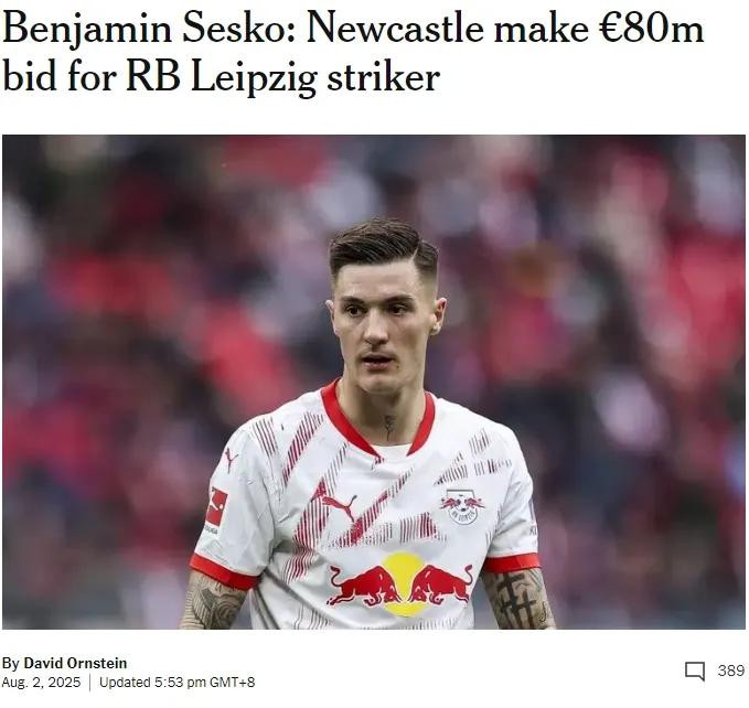 TA记者DO消息,纽卡斯尔已经为谢什科提交了报价,这份报价的金额为7500万欧元加500万浮动,但莱比锡认为这份报价依然不够。此外,曼联也正在追求谢什科,这名22岁的中锋还未作出决定。