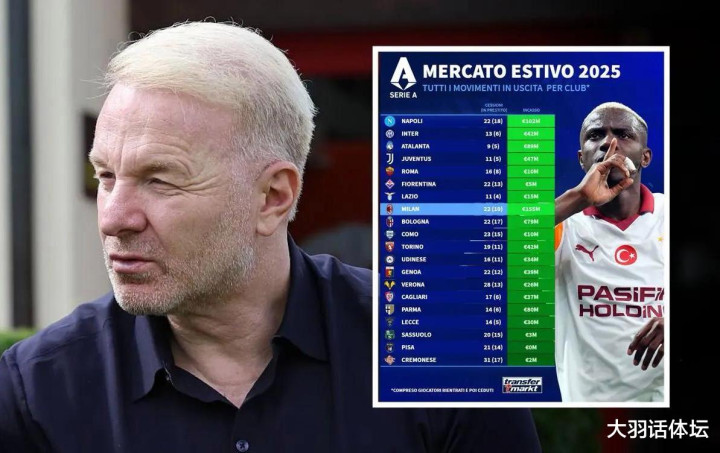随着2025年度五大联赛夏窗关闭,《转会市场》网第一时间统计了意甲各球队的转会工作开展情况。AC米兰成为最活跃的俱乐部,他们在卖人收入和买人支出方面均列意甲首位。值得一提的是,旧将多纳鲁马转会曼城也为红黑军团带来约100万欧元的青训补偿费。