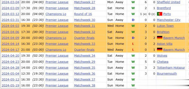 去年的最后8场比赛,阿森纳3胜2平3负;前年的时候,阿森纳在4月份2胜1平2负;大前年的4月份如何,已经不需要我多说什么了。我相信过去几年的溃败,让阿森纳有心理阴影了,93%冠军的赛季,阿森纳在半程结束的时候领先多少分了?现在的阿森纳就是缺乏一股子狠劲,缺乏一股子冠军非我莫属的霸气。