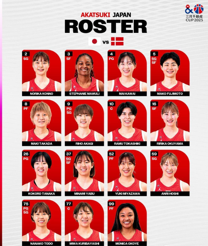 7月3日,日本女篮与丹麦女篮的首场热身赛以65比65战平,次日将进行第二场较量。日本篮协最新公布的15人参赛名单较之此前访华阵容有明显调整,基本反映了其亚洲杯主力框架。名单中包含三名混血球员——马瓜·斯蒂芬妮、奥克耶·桃仁花和渡嘉敷来梦,以及经验丰富的高田真希、赤木里帆等核心球员。值得注意的是,此前参与中日热身赛的9名球员仍保留在列,但防守型内线球员朝比奈梓(14号)已被调整出队。