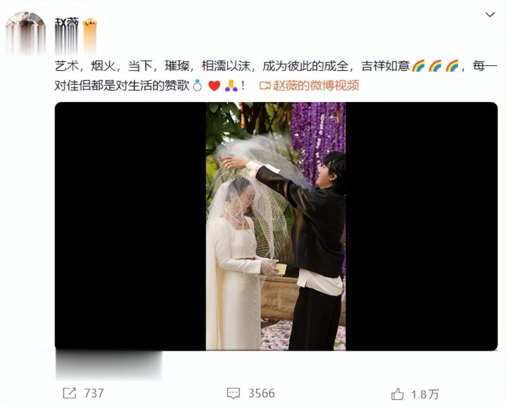 近段时间,赵薇在社交平台发布了她参加好友婚礼的视频。