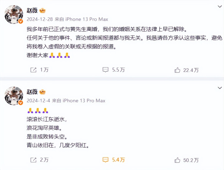 而在同时,赵薇沉寂了三年的社交账号也突然“复活”。