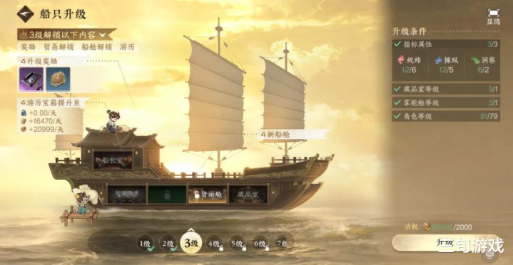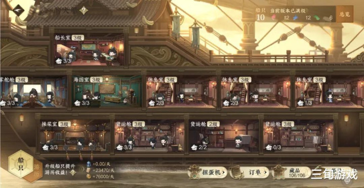 举个例子,仅仅是建造船只就十分有趣。玩家最开始拥有一条小破船,但是在用心经营之下,船只逐渐升级,玩家可以逐步解锁船长室、掌舵舱、操桨室、海图室、休息室、改装室、藏品室、货运舱等不同船舱,最后甚至能变成豪华航母。