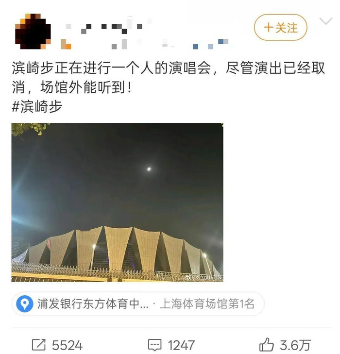 此后,社交平台上流传出滨崎步在空无一人的场馆内表演的消息。