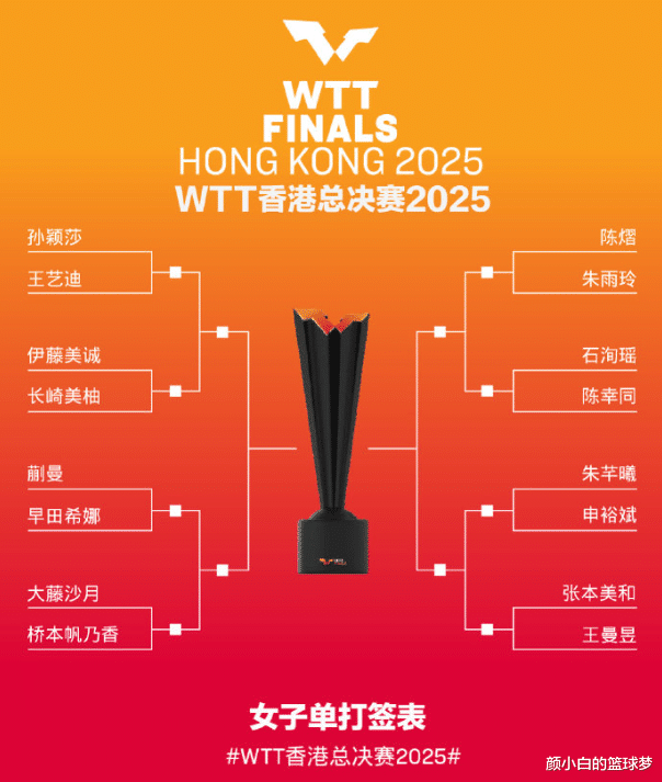 陈熠也将遇上自己的克星朱雨玲,孙颖莎与王艺迪在首轮就要上演火星撞地球,陈幸同在亚锦赛被DNP无缘混团世界杯后将对上2025赛季出战最多的WTT赛事的石洵瑶,蒯曼也将跟近期上升势头不错的早田希娜一决高下。