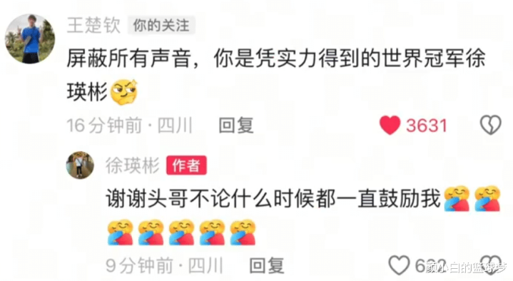 王楚钦:屏蔽所有声音,你是凭实力得到的世界冠军徐瑛彬。
