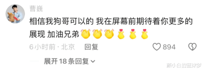曹巍:相信我狗哥可以的,我在屏幕前期待你更多的表现。